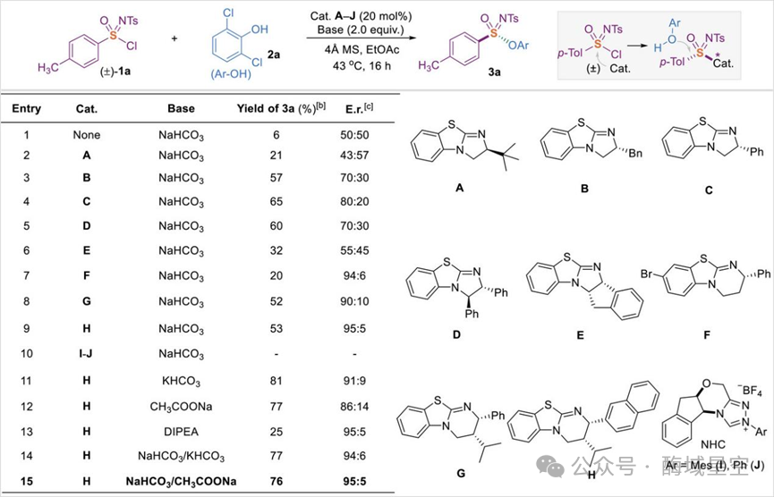 图2:磺酰亚胺酯 3a的对映选择性合成优化