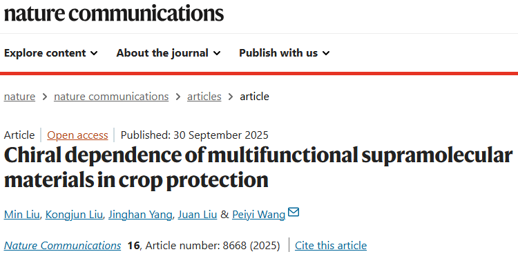 贵州大学王培义团队【Nat. Commun.】手性依赖的多功能超分子材料在作物保护中的应用