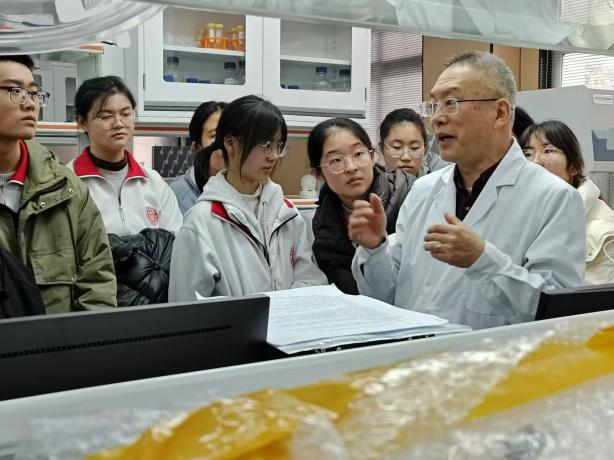 在贵州大学绿色农药全国重点实验室和精细化工研究中心,同学们被琳琅满目的获奖证书及科研成果样品深深吸引。通过各位专家的讲解,同学们了解了该实验室的历史沿革、改革创新、科研团队、设施设备、研究成果等情况。这些成就是贵州大学锐意进取、改革创新历程的见证,更是长期以来贵大人勤奋求实、荣辱不惊之品格的象征。