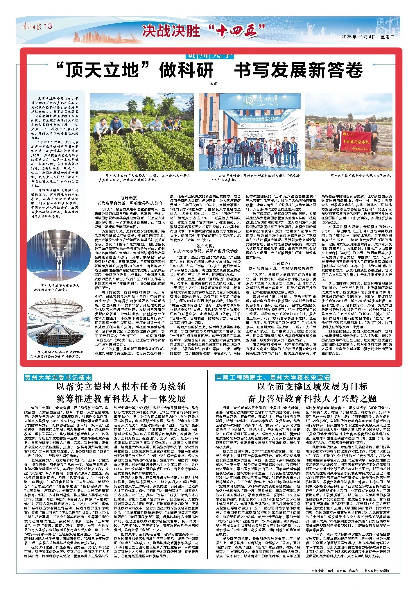 国际学术期刊《自然》的理论突破,到田间地头的丰收喜悦;从数字经济的前沿探路,到乡村振兴的生动实践,贵州大学正以科技为笔,在黔山贵水间挥毫泼墨,书写着报国为民的时代答卷。