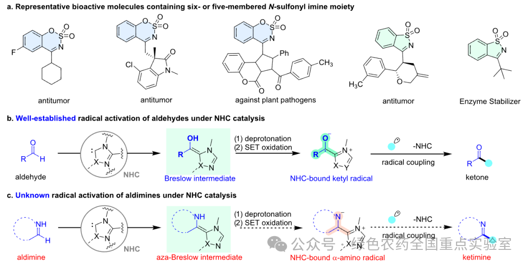 这一研究首次建立了亚胺的 NHC 催化自由基活化模式,打破了 NHC 催化在亚胺领域的研究瓶颈,为高价值环状酮亚胺的合成提供了温和、高效、通用的新方法,在医药、农药等功能分子合成领域具有重要的应用前景,也为后续 NHC 催化的新反应开发提供了新思路。