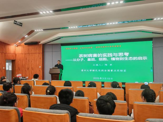 在报告厅,陈卓教授以茶树病害的实践与思考为题给同学们做了一场精彩的报告。他从《茶经》讲起,用深入浅出的语言、生动的事例给同学们讲述了做科研的基本思路和基本方法,鼓励同学们努力学习,挖掘自己的特长,积极探索多学科融合,勇攀科学最高殿堂。
