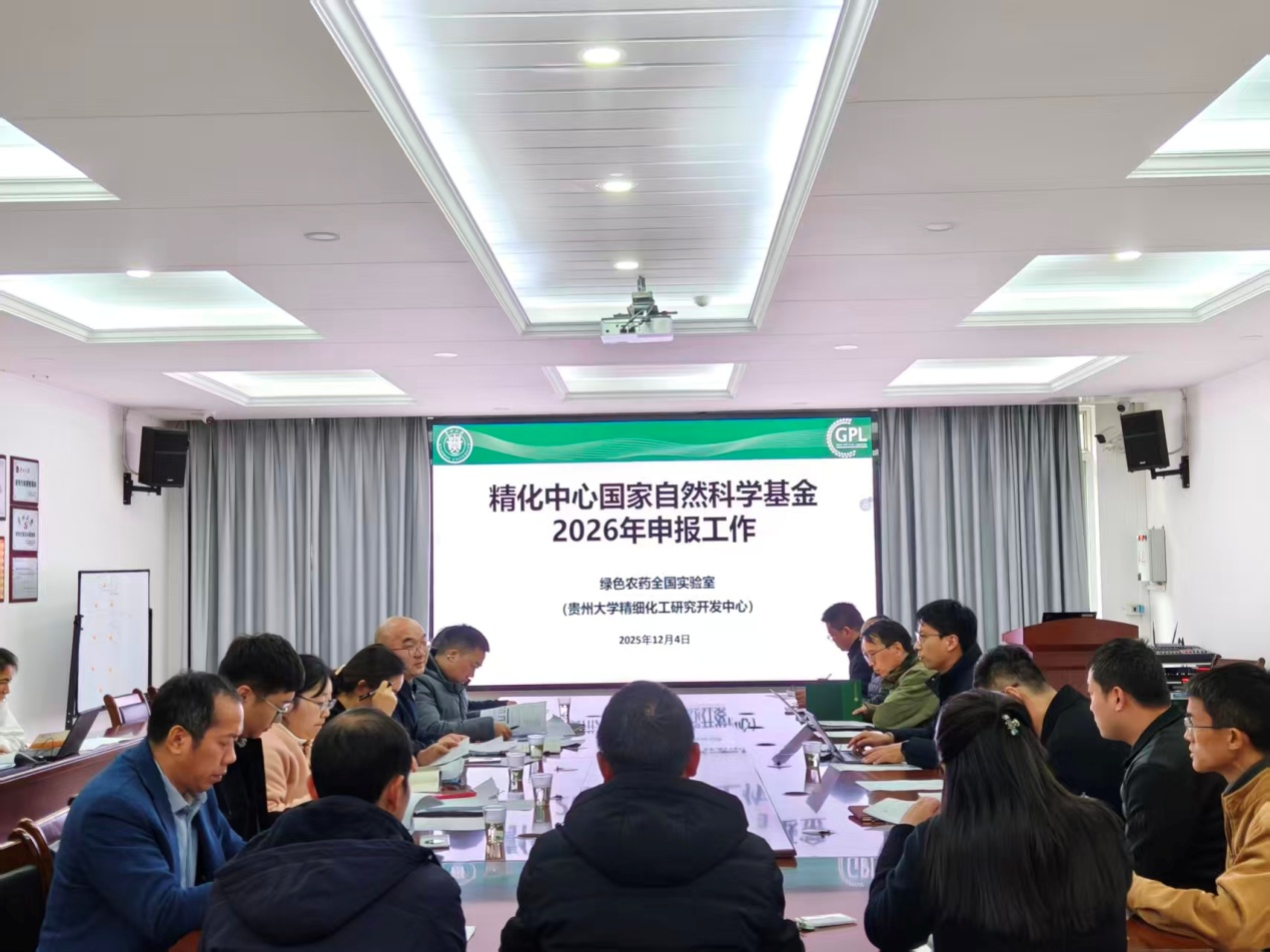 贵大新闻网讯(贵州大学精细化工研究开发中心 供稿)12月4日下午,学校副校长支启军教授到精细化工研究开发中心(绿色农药全国重点实验室),就2026年度国家自然科学基金申报工作进行专题指导。学校科研院院长、中心主任吴剑、副主任李向阳及全体拟申报教师参加会议。