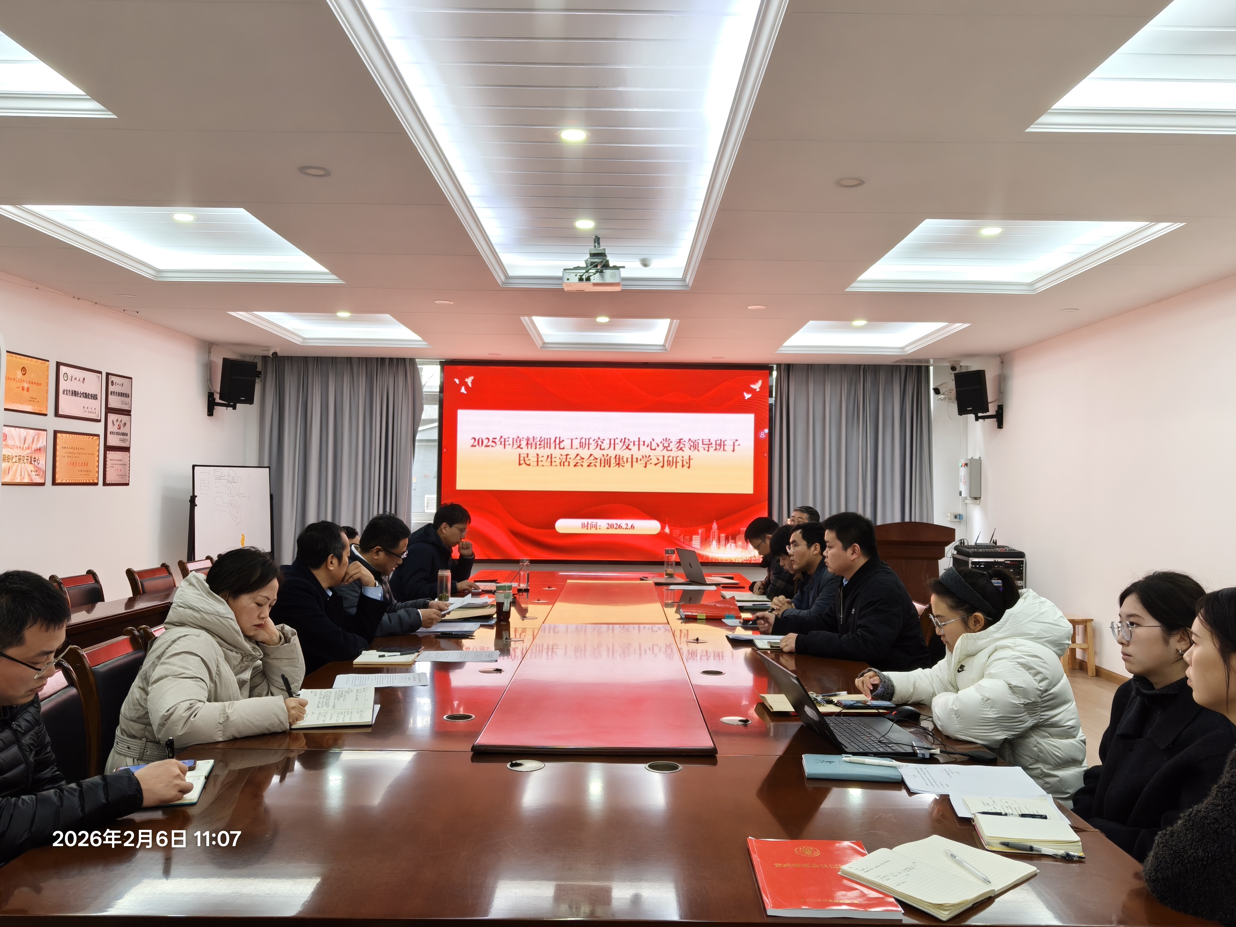 2026年2月6日 ,为深入贯彻落实党的关怀,加强基层党组织建设,贵州大学精细化工研究开发中心(绿色农药全国重点实验室)组织开展了2026年寒假慰问困难党员、支部书记述职评议以及2025年度民主生活会会前研讨学习系列活动。中心党委书记张林、校科学技术研究院院长,中心主任吴剑、副主任李向阳、副主任臧连生、副主任陈卓,副处级组织员杨凌出席会议,中心行政人员及全体党支部书记列席会议。